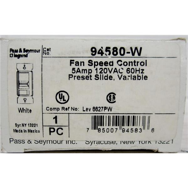 PASS AND SEYMOUR 94580-W WEST SIDE SERIES FAN SPEED CONTROL, WHITE