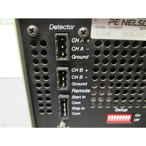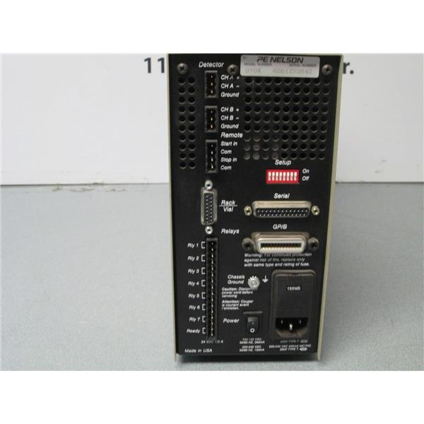 This listing is for a 900 Series chromatography interface controller; *Brand/Name: PE Nelson; *Model/Part #: 970A; *Description: 900 Series Chromatography Interface Controller> 100/120 VAC> 206 mA> 50/60 Hz> multiple rear communication ports> LED display lights for power, ready, over range, sampling and under range> serial, GPIB, relay, rack/vial, remote and detector> power cord INCLUDED> used but in very good condition.