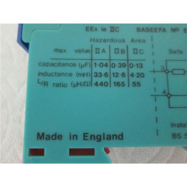 prevents the transmission of excessively high energy levels from the safe area to the hazardous area, diverts harmful voltage transients and surge currents to the ground, protects all measurement and control instruments inside a control room, in the field, or even inside a hazardous area, DIN rail mountable, used but comes "as removed" from working environment, appears to be in very good condition.