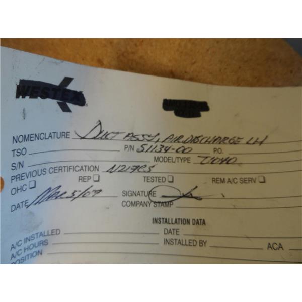 Piper Aircraft Air Discharge Duct Assembly LH 51134-00