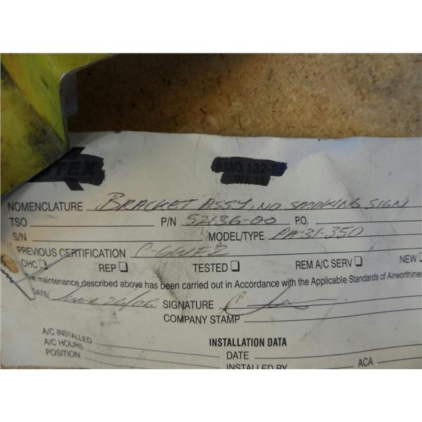 Piper Aircraft No Smoking Sign Bracket Assembly 52136-00