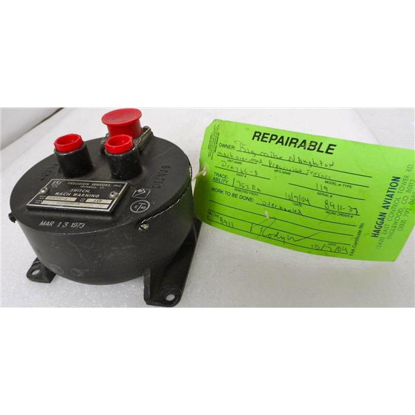 - Description: Precision Sensors Inc Mach Warning Switch, Tag is Marked "Repairable"; Aviation Part / Component; Aircraft / Airplane Part