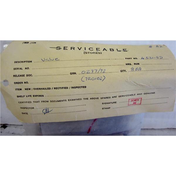 *LOT OF 8* 4531-8D VALVES, AVIATION AIRCRAFT AIRPLANE SPARE SURPLUS PART