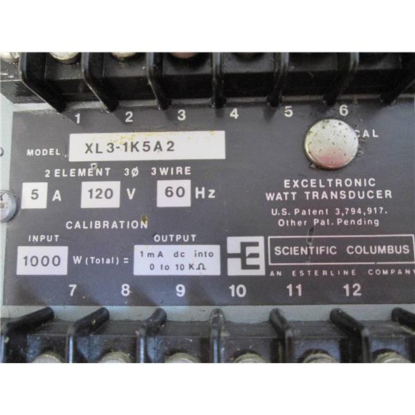 This listing is for a USED Scientific Columbus XL31K5A2 Exceltronic Watt Transducer 5AMP 120v 60HZ XL31K5A2