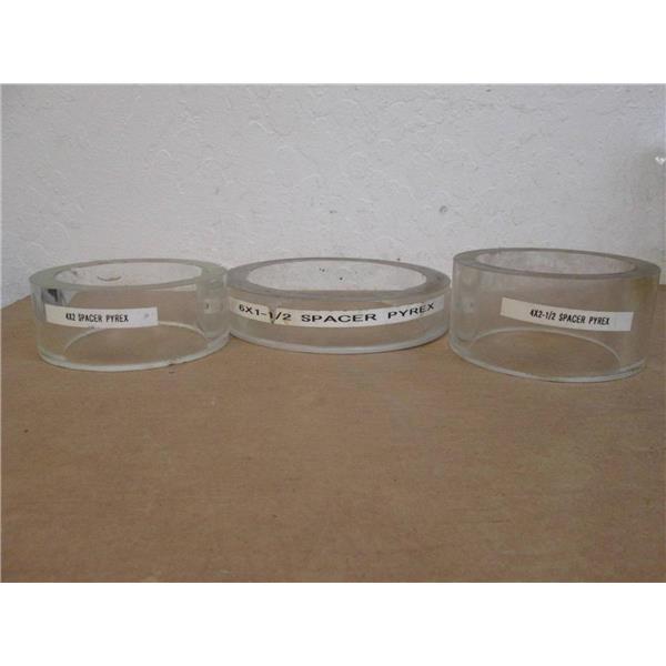 - Description: Set of 3 Pyrex Spacers; 6" x 1 1/2"; 4" x 2 1/2"; 4" x 2"; used but in very good condition.