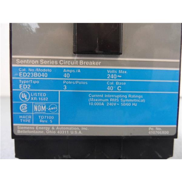 Siemens ED23B040 40A Sentron Series Circuit Breaker 3 Pole 240V