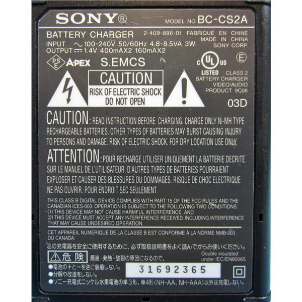 SONY BC-CS2A AA/AAA NI-MH BATTERY CHARGER - USED w/GUARANTEE