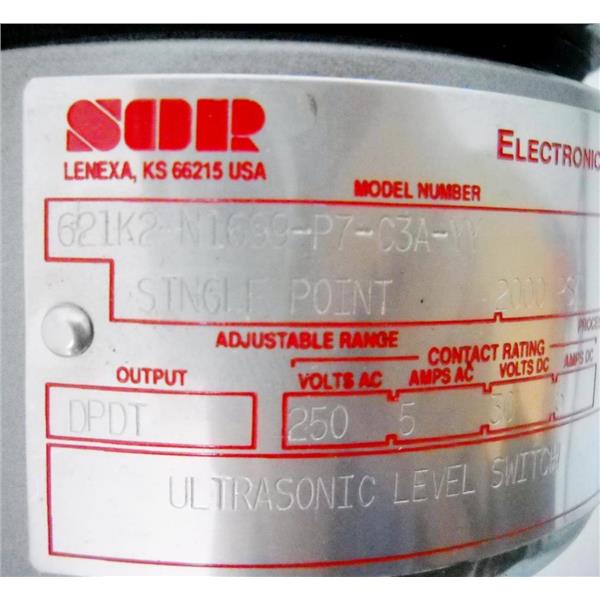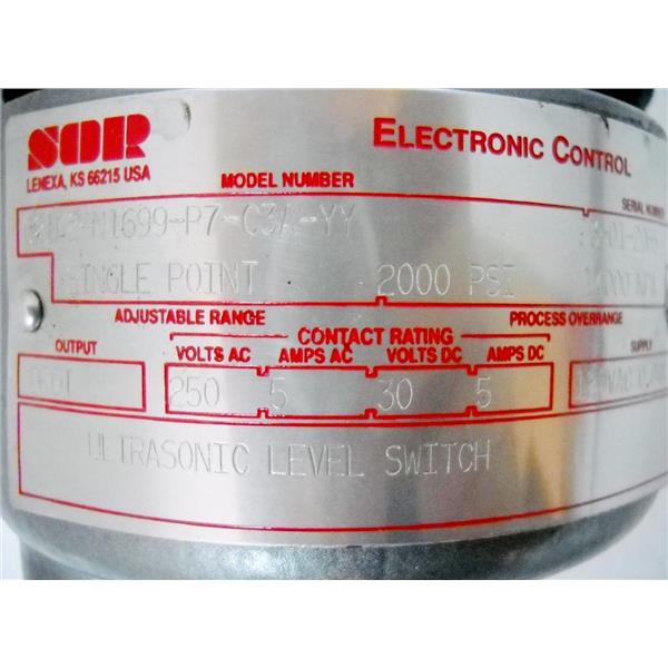 SOR 621K2-N1699-P7-C3A-YY ULTRASONIC LEVEL SWITCH, SINGLE POINT, 2000PSI, DPDT OUT, 250VAC 5A AC/30VDC 5A DC CONTACT RATING, 120VAC .04A SUPPLY - NEW/SURPLUS