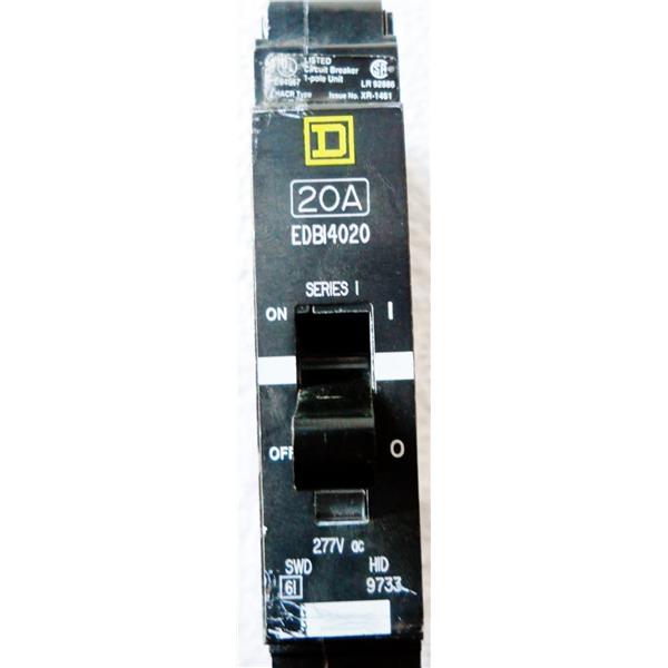 SQUARE D EDB14020 CIRCUIT BREAKER, EDB TYPE, 20A 1POLE 277VAC, SWITCHING DUTY RATED - USED w/GUARANTEE
