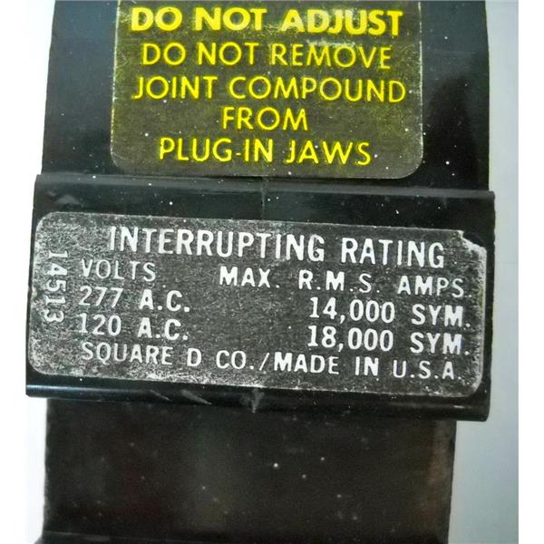 SQUARE D FY14020A CIRCUIT BREAKER, 20A 1 POLE 277VAC (20 AMP SINGLE POLE 277 VAC), MOLDED CASE CIRCUIT BREAKER - USED w/GUARANTEE