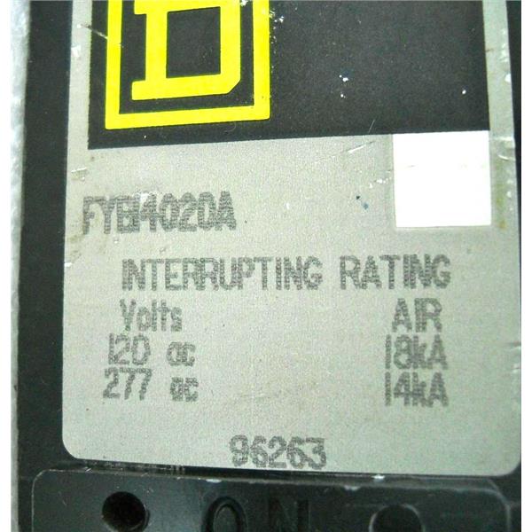 SQUARE D FYB14020A CIRCUIT BREAKER, 1 POLE, 20A, 277VAC (SINGLE POLE 20 AMP 277 VAC) - USED w/GUARANTEE