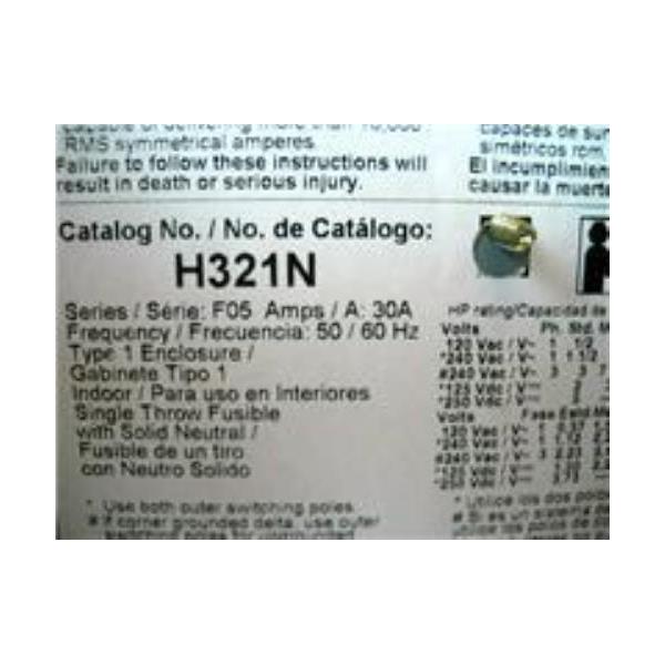 SQUARE D H321N SAFETY SWITCH, DISCONNECT SWITCH, FUSIBLE HD, 240V 30A 3P NEMA TYPE 1