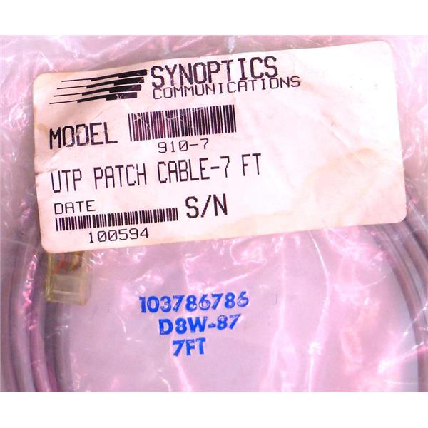 SYNOPTICS COMMUNICATIONS MODEL 910-7 UTP PATCH CABLE 7FT NEW
