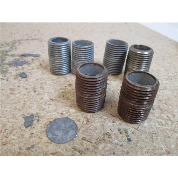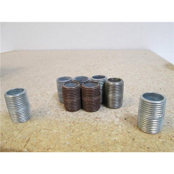 This listing is for 1/2" Close Galvanized Nipple Fittings - 24 New, 6 Used - (The last two pictures show 2 new and 6 used pieces so you can tell the difference)