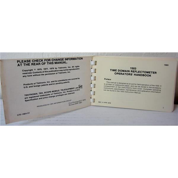 - Description: Operator's Handbook for 1503 Time Domain Reflectometer