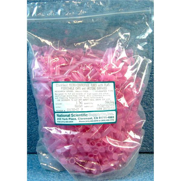 #2 *500/BAG* VWR 20172-930 CV1700-GTP CLICKSEAL MICRO-CENTRIFUGE TUBES WITH FLAT PIERCEABLE CAPS AND WRITING SURFACES, VIOLET COLOR