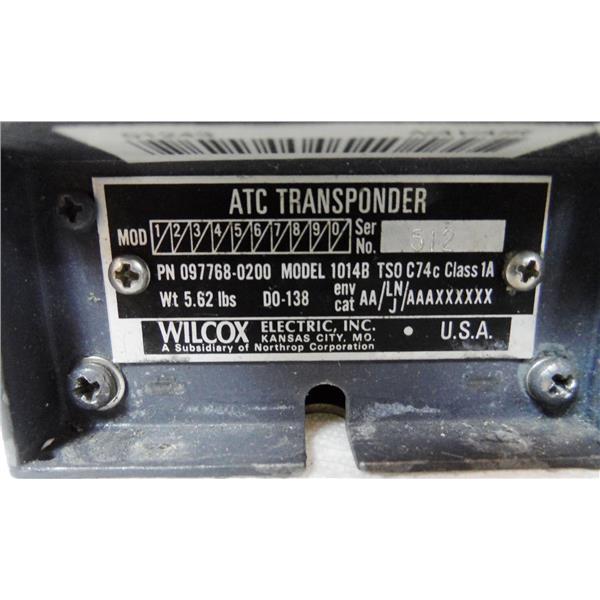 WILCOX 097768-0200 MODEL 1014B ATC TRANSPONDER, TAGGED "CONDITION AS REMOVED"