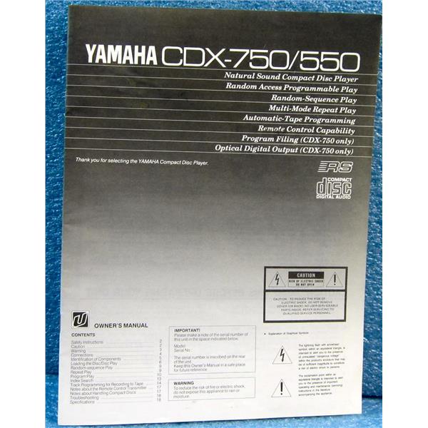 YAMAHA OWNER'S MANUAL FOR CDX-750 550 NATURAL SOUND CD PLAYER